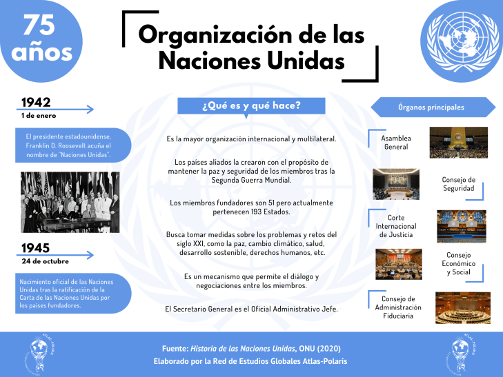 El 24 de octubre de 1945 se dio la fundación de la Organización de las Naciones Unidas (ONU), lo cual ha significado una redirección sustancial en las relaciones interestatales.