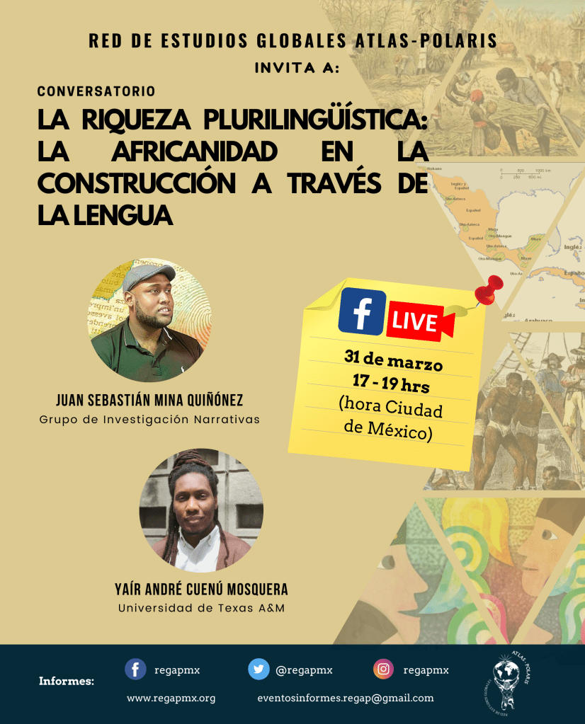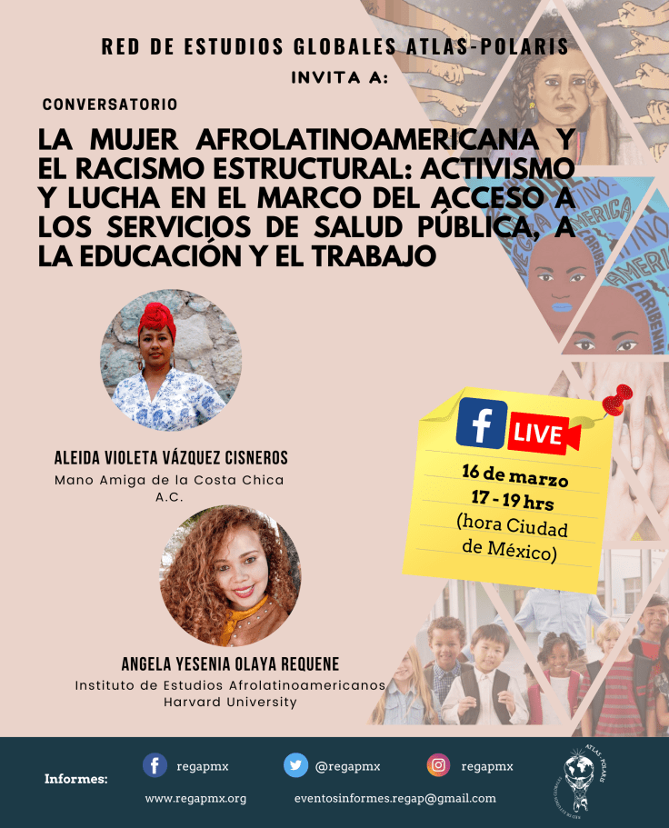 En marco de la Agenda de Investigación en Estudios Afrolatinoamericanos la Red de Estudios Globales Atlas-Polaris (REGAP) se plantea la realización de un ciclo de conversatorios, bajo el nombre de: «La afrodescendencia en Latinoamérica: una lucha contra la invisibilización histórica, étnica, cultural y política».