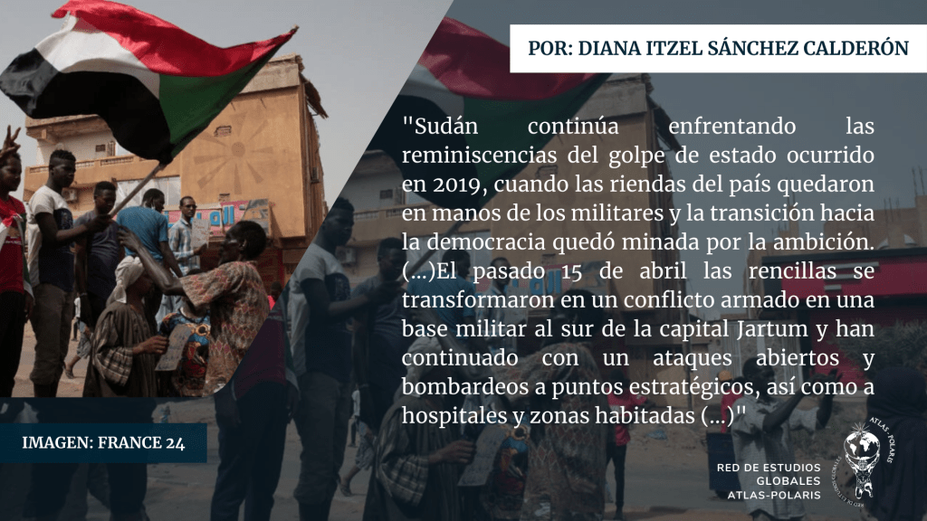 En ese año, motivado por la crisis económica y lo que parecía ser una autocracia de tres décadas, el aparato militar dio un golpe de estado que derrocó al presidente Omar Al-Bashir y cedió el poder a Abdel Fatah al-Burhan y Mohamed Hamdan Daglo (alias “Hemedti”, líder de las Fuerzas de Apoyo Rápido, FAR); sin embargo, debido a la presión internacional, los acuerdos que se firmaron no establecían de qué manera y bajo qué mando se gobernaría Sudán, una nación empobrecida y con hambre de democracia. A manera de una tragedia anunciada, la transición se entorpeció y en el 2021 aconteció un segundo golpe de estado en el que Burhan arrebató el puesto del primer ministro civil Abdalla Hamdok.