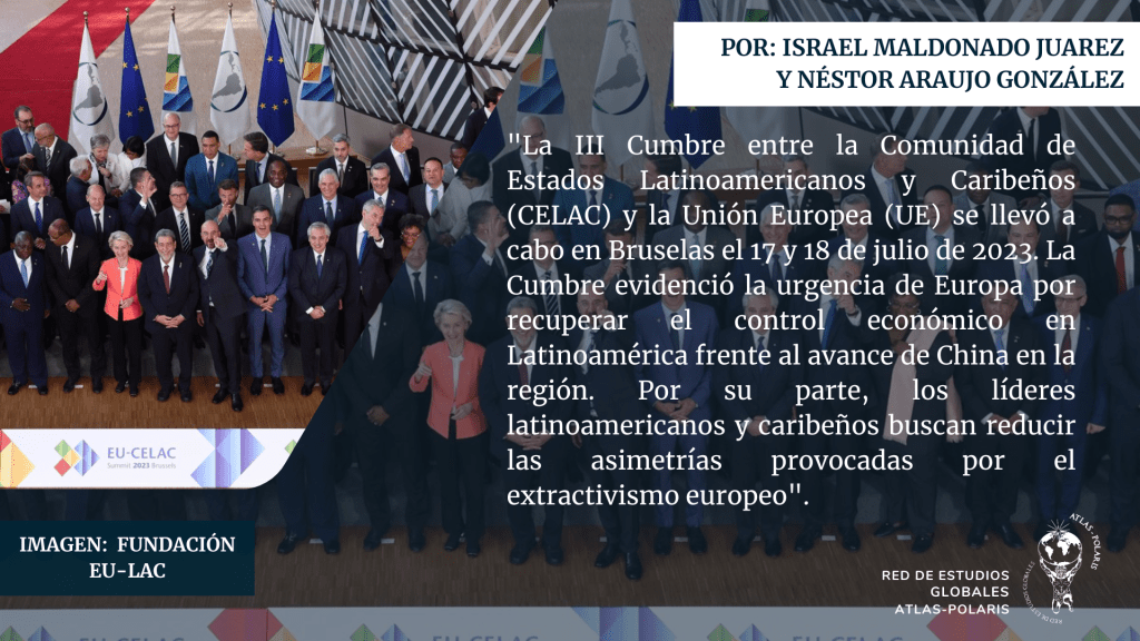 La III Cumbre entre la Comunidad de Estados Latinoamericanos y Caribeños (CELAC) y la Unión Europea (UE) se llevó a cabo en Bruselas el 17 y 18 de julio de 2023. La Cumbre evidenció la urgencia de Europa por recuperar el control económico en Latinoamérica frente al avance de China en la región. Por su parte, los líderes latinoamericanos y caribeños buscan reducir las asimetrías provocadas por el extractivismo europeo.
