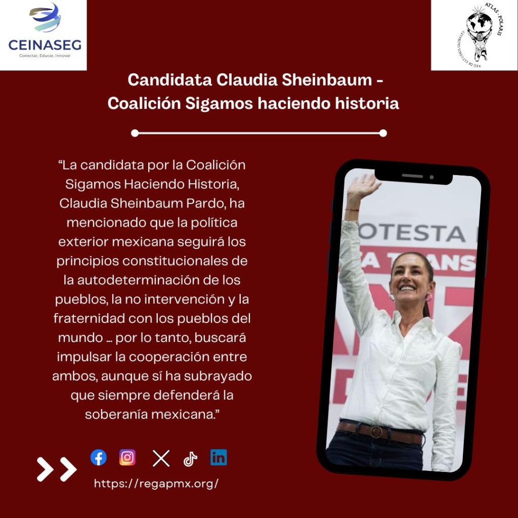 A partir de las elecciones presidenciales próximas a celebrarse el 2 de junio del 2024, la Red de Estudios Globales Altas Polaris (REGAP) en colaboración con el Centro de Investigación de Asuntos Estratégicos Globales (CEINASEG) han tenido a bien abordar la visión y perspectiva de los tres candidatos contendientes a la presidencia de la república mexicana, esto enfocado a las relaciones internacionales y el impacto internacional que conllevaría su mandato.