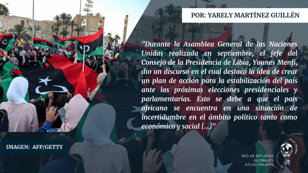 Columna escrita por Yarely Martínez Guillén Durante la Asamblea General de las Naciones Unidas realizada en septiembre, el jefe del Consejo de la Presidencia de Libia, Younes Menfi, dio un discurso en el cual destacó la idea de crear un plan de acción para la estabilización del país ante las próximas elecciones presidenciales (24 de... Leer más →